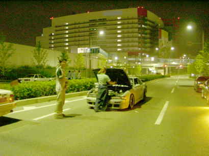 道の真ん中で光軸を調整している、まっちゃん&紗希ちゃん