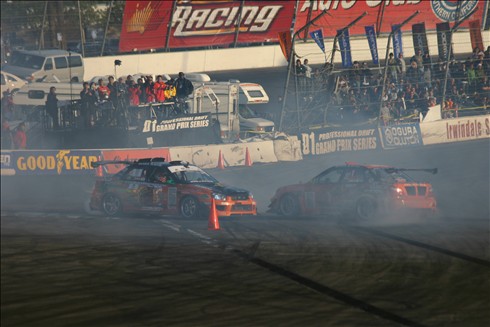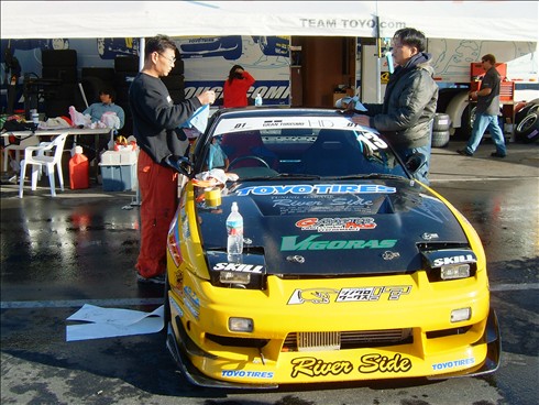 フロントガラスのハチマキ 白色は最終日オールスター戦のもである。