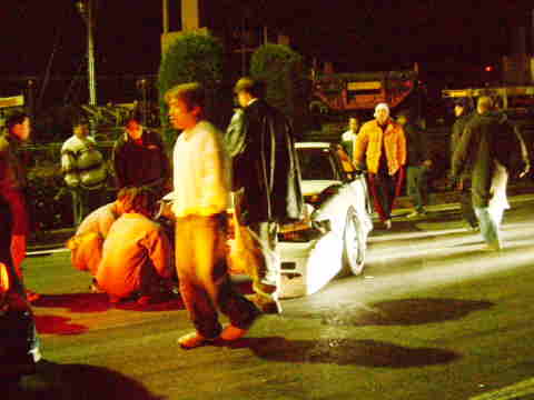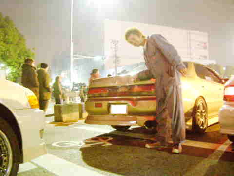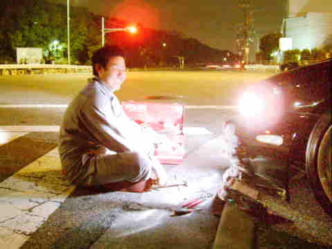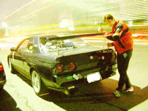 | 橋口さん仕事の合間時間をかけて一生懸命作った自分の180、タービンも新品のオリジナルを付けた為、出来上がり初日は、ブーストをかけずに走っていたのにも関わらず最悪の結果がおとずれる。『元気を出すのだ。』ε=ε=┏(・・)┛ | |