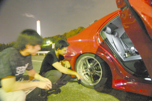 | オーバーフェンダー研究会 会長織ちゃん今日もまたフェンダーを見つめ続ける。ε=ε=┏(・・)┛ 右の画像は織ちゃんの愛車にタイヤとフェンダーの隙間に名刺をはさんでます。 名刺が一枚ギリギリ入ります。なおかつこの車高で走ります。 ちなみに、気づいた人も居ると思うが織ちゃん愛車JZX110が90に?・・・ 実は織ちゃん、走り用と 町乗りを分ける為110を売ってしまい。90を走り用に購入。 そして町乗り用になんとゼロクラウンを購入。 |