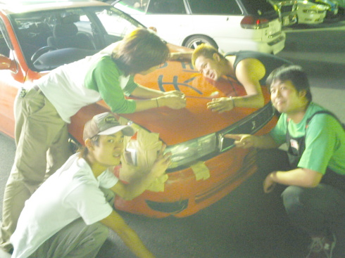 | 唄君が、やっている新しいエアロ屋さんです。今回の画像は、試作なので良く見てみるとボンネットの絵柄が上下逆です。 広告が雑誌ドリフト天国に載っているので、ご覧あれ。 ちなみに、この絵柄はエアーブラシでは無くFRPの製作工程での樹脂をのせる前に生地を貼り付けその上に樹脂をふいている為 実際に見てみると素晴らしく綺麗です。 絵柄は、好きな物を自由に選択出来るのでオリジナル性は無限大 |