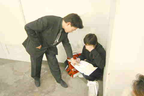 | 金融屋の織ちゃん、お客さんに せっせとローン用紙書かせてました。 | |