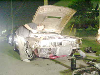 オイルクーラーをぶつけてしまった、金ちゃん(@_@)