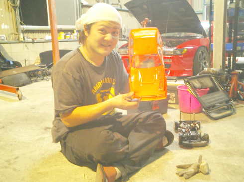 | 携帯のカメラ恐るべし性能『んー、凄い。』 この画質でも約60分の1まで下げています。 原版の画像は、恐るべき高画質。(」゚◇゚)」 ちなみに、蟹団のこの二人もラジコン買って現在製作中。(*^―゜)v |