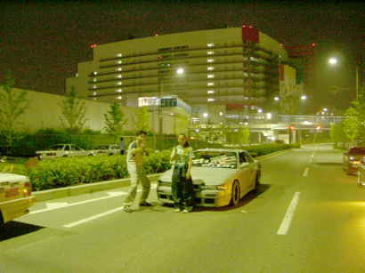 道の真ん中で光軸を調整している、まっちゃん&紗希ちゃん