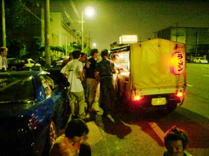 雑誌・ドリフト天国の取材で来ていた『ウッチー』屋台の前で、ピース((* ̄m ̄)ぷぷぷ)