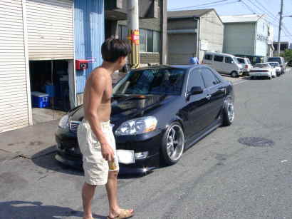 織ちゃん、相変わらず上半身はだか(o^v^o) 自分の愛車に見とれている。