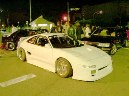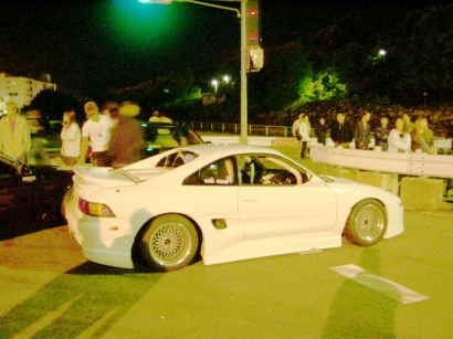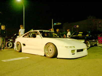 知ってしまった、チーム・パワーライブのリーダーが乗るMR2の秘密(」゜ロ゜)」 チョー車高短、普通に走っているだけで地面をすっているのに、コーナーのキャッツアイ確かに 当っているのに、なんとも無い、何で? アンサーそれは、よく見てみると下の部分は、すべて、スポンジなのだ・・・・・・
